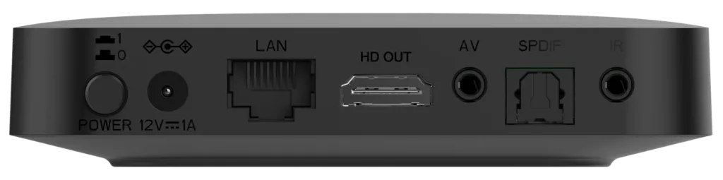 There are two USB 2.0 ports. On the back of the box, you will also find an HDMI 2.0a jack, S/PDIF interface, Ethernet LAN connection, and a connection for the supplied external IR receiver.